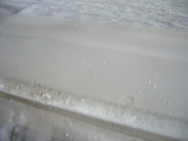 しばらくボーゼン。でもボーゼンとしてたらますます事態は悪化することに気づく→近くの掘建て小屋が空いていたのでオーナーさんに事情を説明したら、使ってよい、とのことだったので使わせてもらった。 が、時すでに遅し。ペイントした部分はすでに水玉模様になっておりました、、、、、、。 しかも雨が降ったのはこの30分ぐらいだけ。 そこからは曇りでも雨は降らなかった。 夕方に少し降ったけど、もうその頃にはペイントは乾いていたし。なんてハードラック(ある意味強運?)、、、。