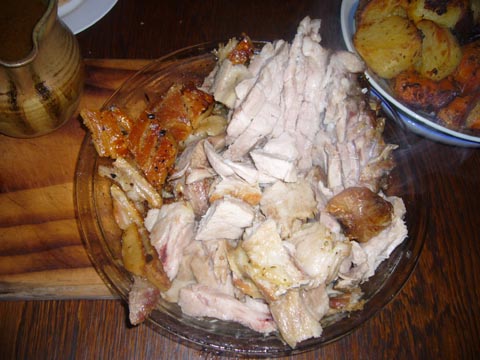 そしてホストは豚の皮を引き離す。この皮が美味いらしい。