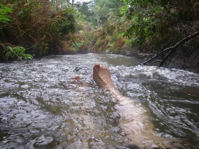 ココは、SH5のWaiotapuに行く手前近くにある。 SH5のRotoruaからTaupoに向かう途中にある“Old waiotipu(違うかな??これに近い名前)Rd”(Kerosene Creekに続く道)を左折。ソコから2kmぐらい行ったところにあるカーパークに車を止めて、歩いて1分ぐらいで温かい小川に到達~~。