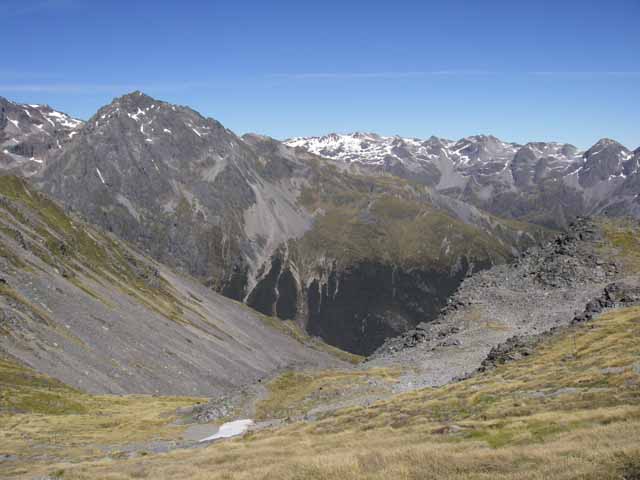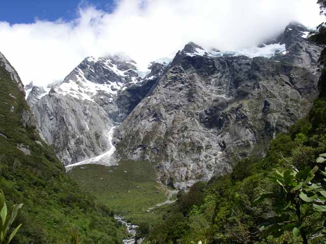 帰り道に僕がコースから外れてしまったらしく、Masaとはぐれてしまって少しあせる。 コースには戻ったものの、歩いてもMasaの姿が見えないので引き返すことに決定。 途中、8人パーティーさんに出会って、Masaが僕を探しているということを教えてもらう。8人パーティーさんはここにday tripに来て4日目に泊まっていたHutに戻るので同じ道程だったのだ。