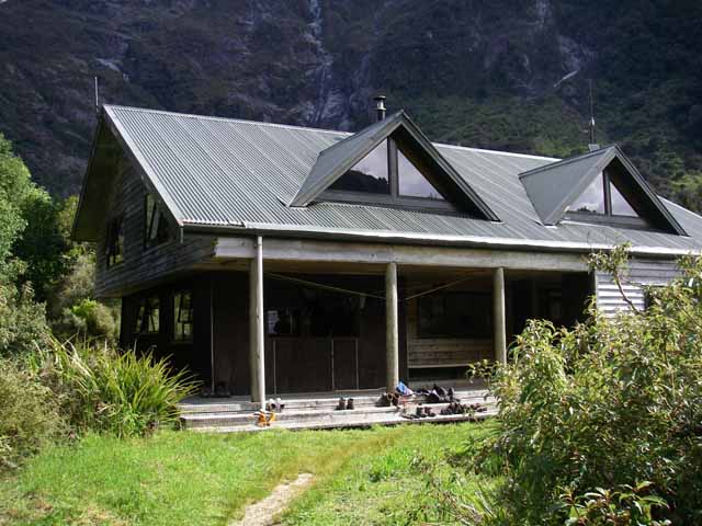 4時間ほどかけてHutに到着後、靴と靴下を乾かしたのでした。 Hollandのおじさんも8人パーティーのkiwiさん達も同じHutに泊まりました。 このHutは、川が近くにあって景色もよく、トイレも近くて、きれいな良いHutでした。