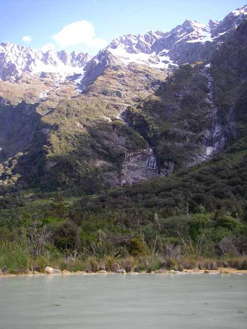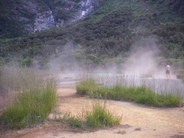 Fox Glacierから20kmぐらい南にいったところの、Copland TrackというTramping Course(途中まで)に行ってきました。“スタート地点から6時間から8時間歩いたところに、温泉がある”という話を聞いていたので。 Welcome flat hutという山小屋の近くにあるんですけど。