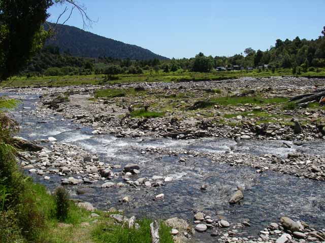 渡るには案外と大きい川で、渡る時に水が膝のすぐ下ぐらいまで来た!! 川の下には石がごろごろしてたし、流れもちょっと速かったので靴を脱いで渡ると危険。靴を履いたまま川を渡ったので当然、靴はびしょ濡れ、、、、。 防水のTramping bootsも上から水が入ってきたんじゃあ、意味を成しませぬ。